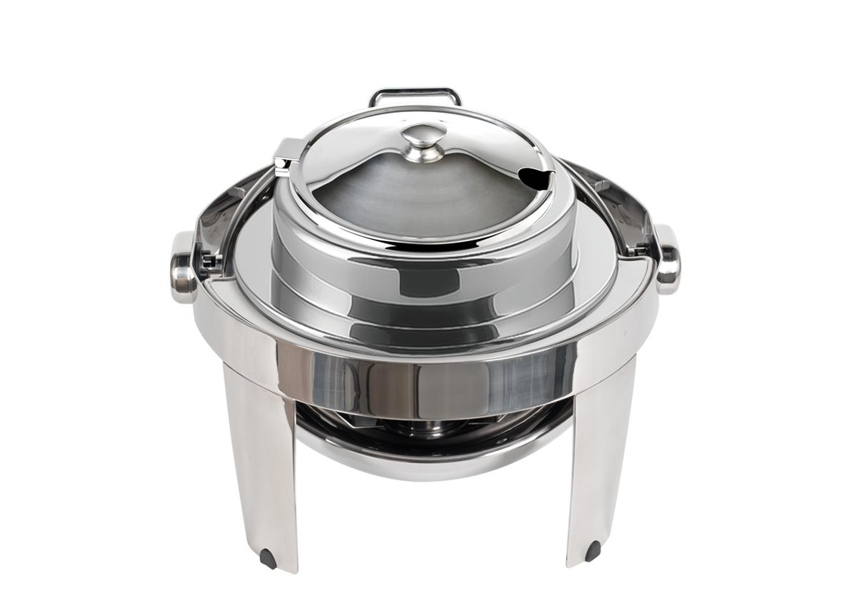 15.5" Round Stainless Steel Soup Station Kit with Hinged Slotted Lid