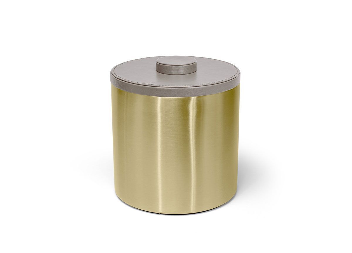 3 qt Round Brushed Stainless Ice Bucket - Matte Brass with London Stone Lid