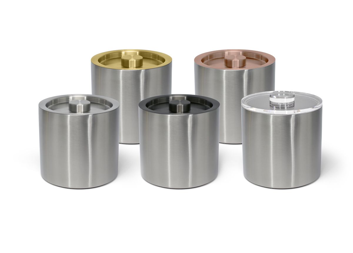 3 qt Round Brushed Stainless Ice Bucket - Silver with Rose Gold Lid
