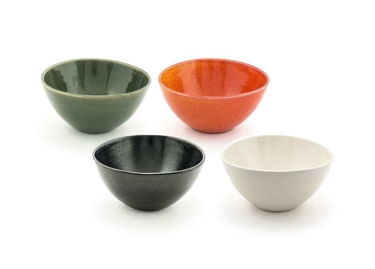 Durable, high-temperature porcelain in an oval organic shape,with a colorful reactive glaze.
